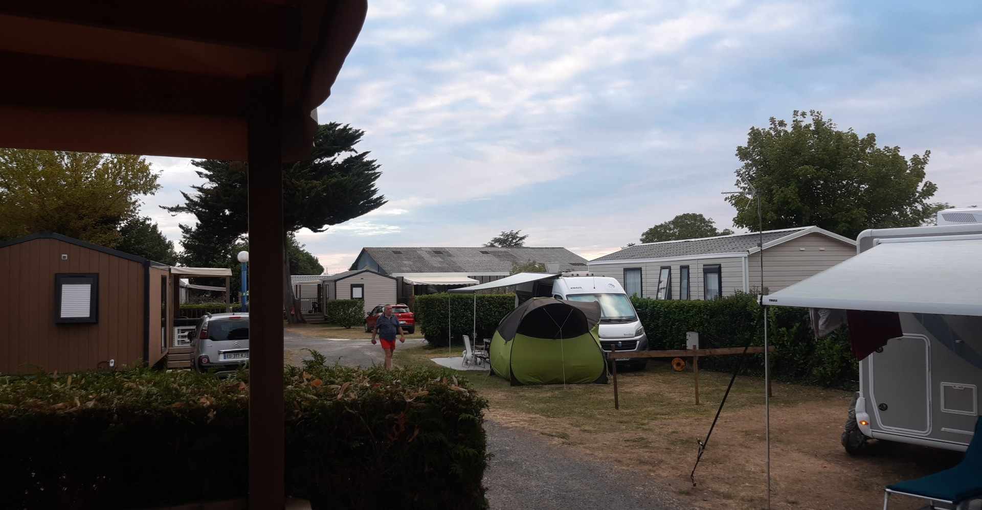 Accueil un peu froid, quand on a passé la nuit à rouler et la matinée à tourner dans Royan pour attendre midi, et que l'on nous fait attendre sur le parking en plein soleil parce que les arrivées ne commencent qu'à 15h. Peut être ont-ils passé l'aspirateur sur notre emplacement de tente pendant ce temps là ? Pour le reste, c'était assez bien.