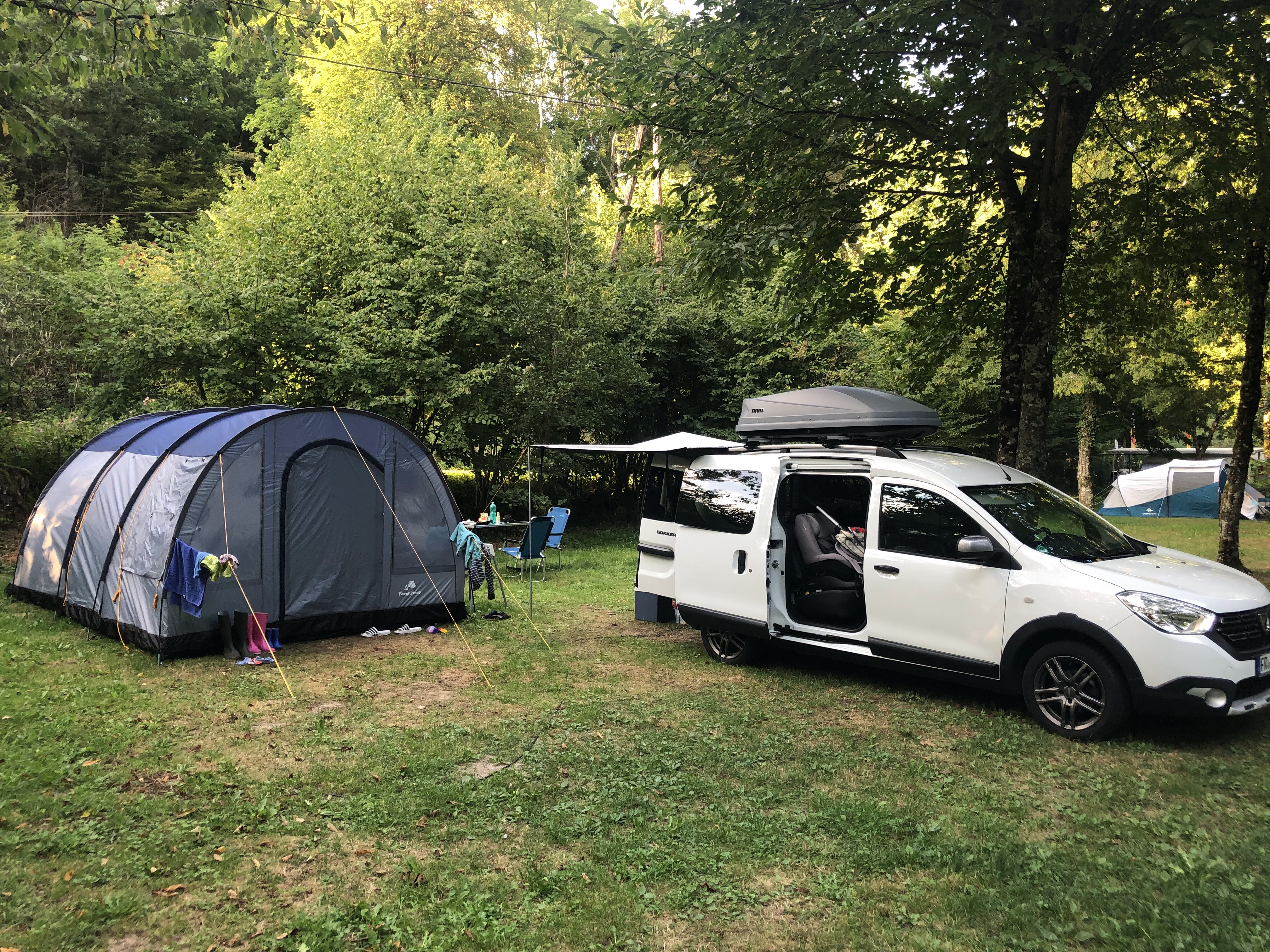 Posté le 23/04/2019 à 19:13" Très beau camping sous les arbres. Nous étions avec une tente et une voiture. Les emplacements disposent d'un joli terrain pour les tentes (pelouse/sol forestier meuble). Il y a un grand château gonflable et plusieurs trampolines. L'aire de jeux pour enfants est également géniale. La réception est très sympathique et les pâtisseries sont délicieuses ! Nous reviendrons certainement pour un troisième week-end ! "