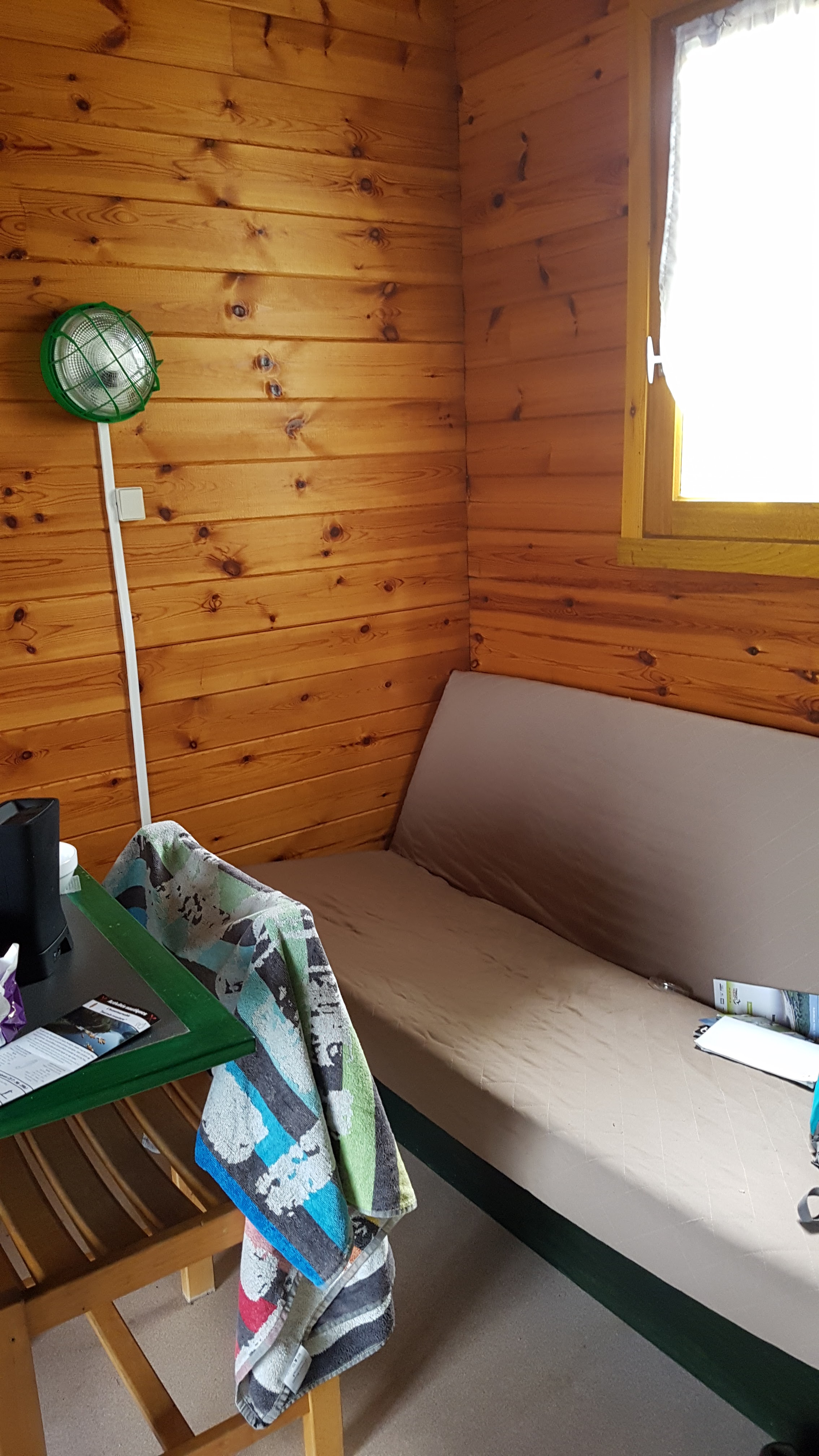 Posté le 09/08/2018 à 18:26"Lieu agréable mais le chalet est quelque peu désuet : porte d entrée très difficile à verrouiller, micro onde HS, cabine de douche extra small tout comme la chambre des enfants digne d un appart au sport d hivers (1m20 par 2m20 je pense): de vrais mouchoirs de poche!!.. Et puis, il y a un meuble de cuisine plaqué contre un mur, ce qui permet d utiliser seulement 1/3 des rangements!! Au dessus de quel on trouve un porte manteau, pas vraiment pratique tout ça... je comprends pourquoi il n y a aucune photos de l intérieur des chalets.... Cerise sur le gâteau : aucun détecteur de fumée dans le chalet! Le départ fut épique également: plus de 30 min d attente sur l horaire prévu pour faire un état des lieux (qu il fallait réserver 48h avant le départ...). La jeune devait faire le ménage chez nos voisins qui sont partis en laissant un chalet crade et sans pour autant payer le forfait menage... Enfin bref, les chalets sont un fond de commerce juteux pour le propriétaire avec très peu d investissement humain et matériel."