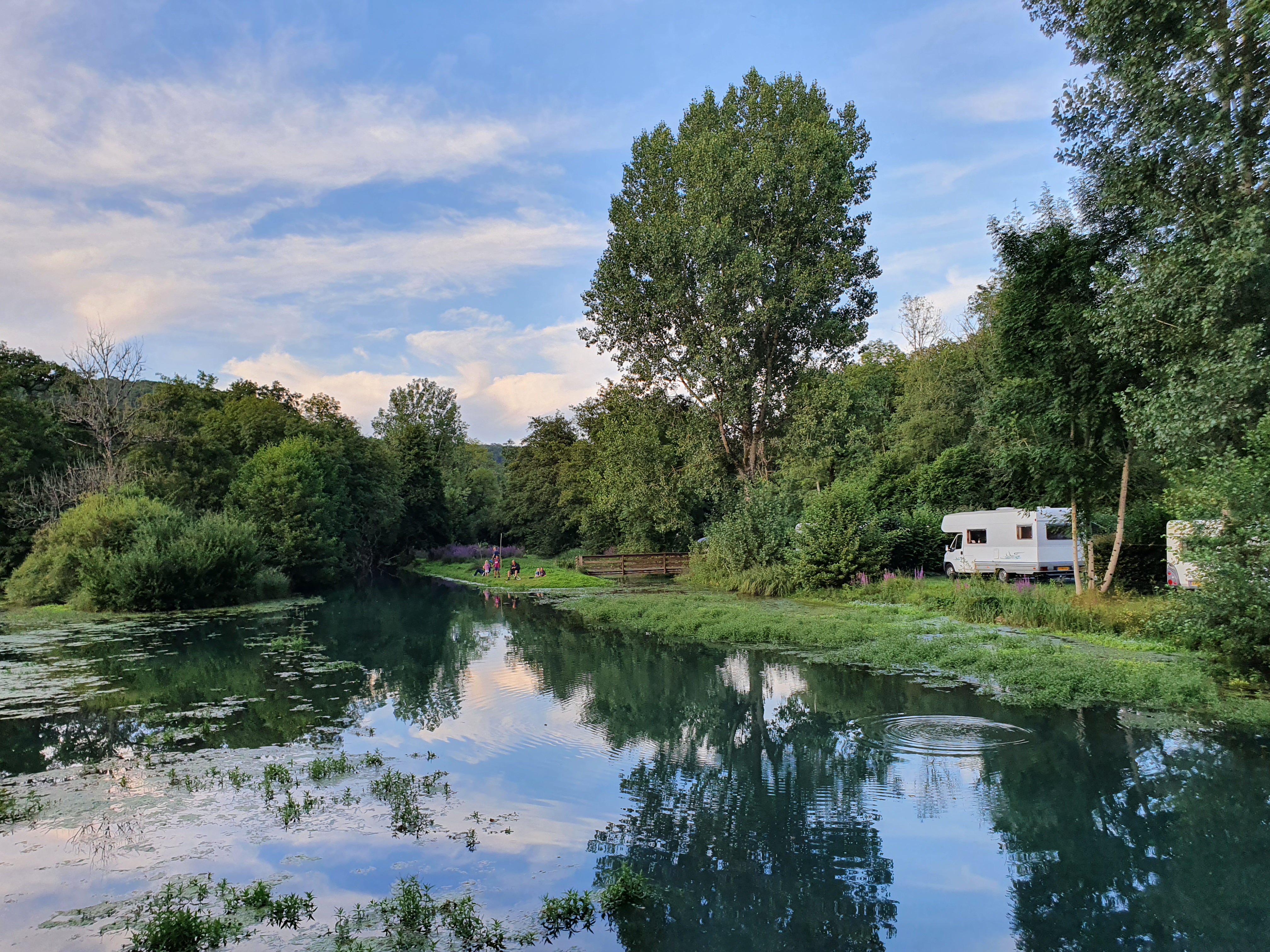 Posté le 18/08/2022 à 08:30" Un camping idyllique Un beau camping dans un endroit idyllique. Vous avez l'impression d'être « loin du monde » pendant un instant. C'est juste dommage que le restaurant/café ne soit pas ouvert. Les sanitaires sont vétustes mais propres. La piscine est vraiment belle et tout le camping est vraiment magnifique et les bâtiments anciens ont été parfaitement restaurés. "