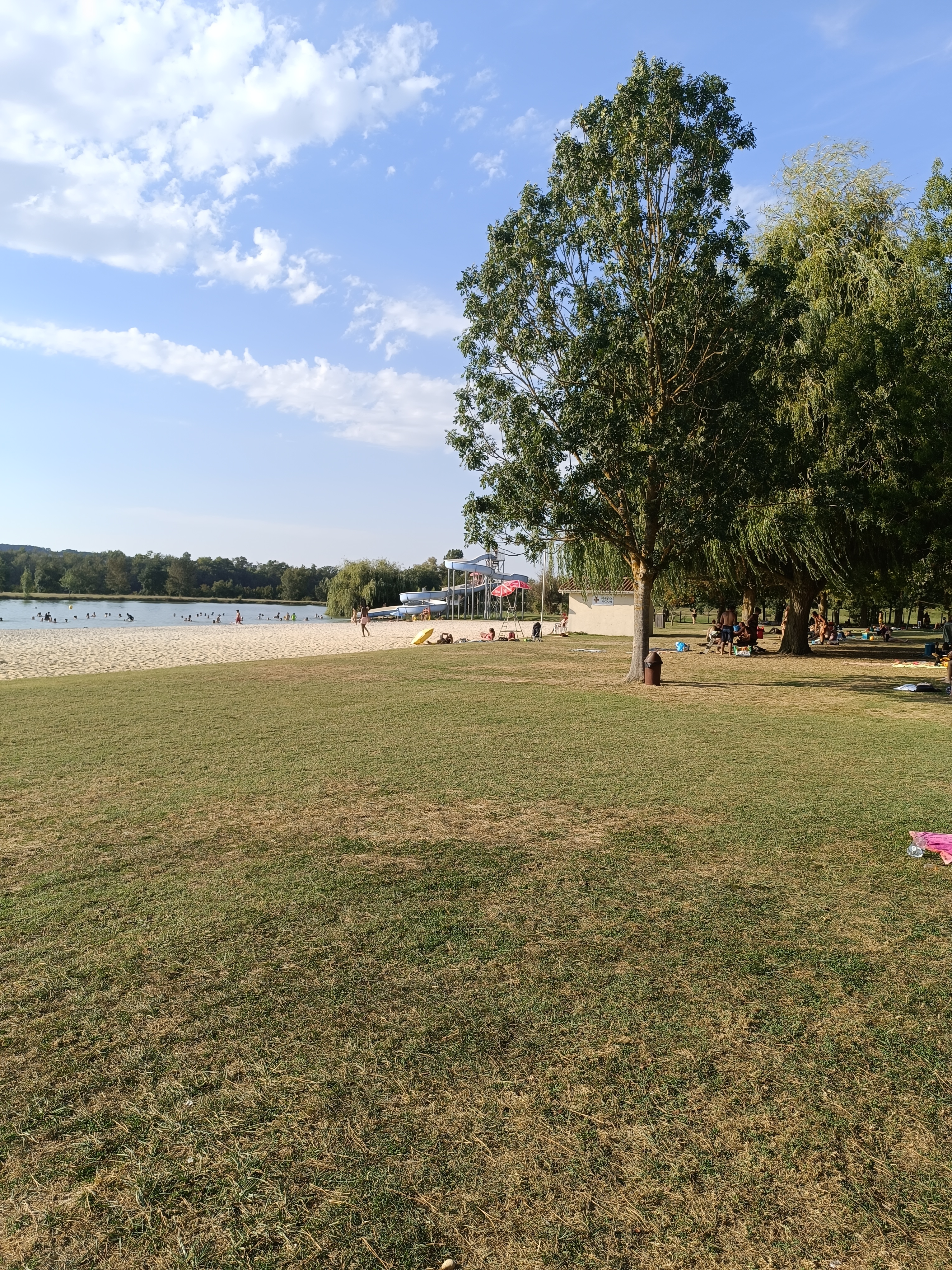Endroit vraiment sympa au bord du lac avec baignade, quelques toboggans dans l'eau et un endroit pour manger.