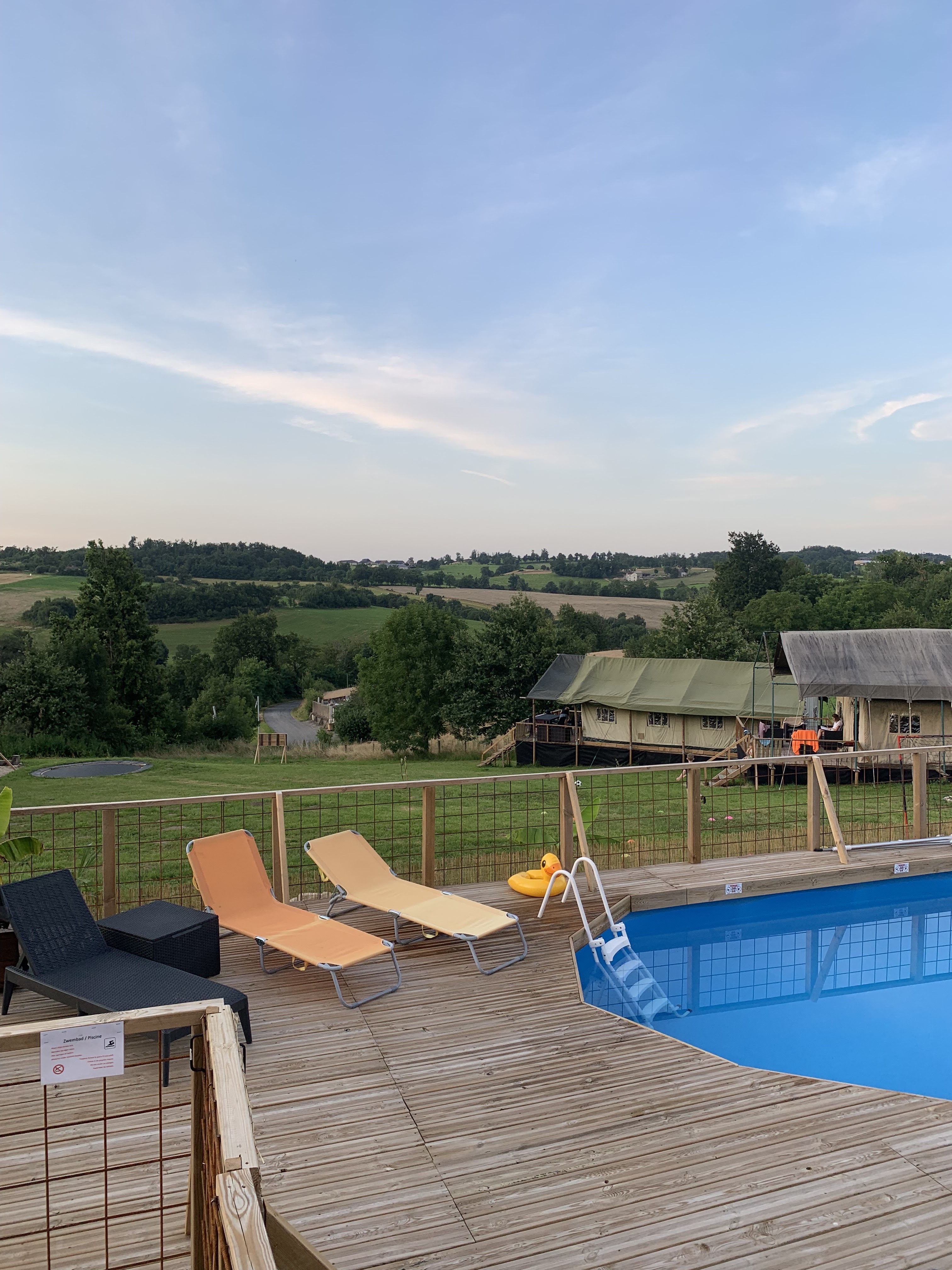 Ce petit camping familial est idéal pour une famille avec enfant amoureuse de la nature et du calme. Les critiques sont peut nombreuses car le lieu a été ouvert en juillet 2021. Les logements sont spacieux, propres et bien équipés. Ce complexe de 6 tentes permet aux enfants de se rencontrer facilement et de jouer ensemble en sécurité dans l’aire de jeu. En effet, le trampoline enterré fait succomber immédiatement les enfants. Pour les parents, une terrasse avec une vue sur la campagne aveyronnaise saura combler leur besoin de sérénité. Si la chaleur est trop forte une piscine accolée à la terrasse permet de se rafraîchir. La région est très riche en activité et panorama : châteaux, grottes, villages médiévaux, baignade en lac et rivière, forêts. Et enfin, comment de pas mentionner Kirsten et Wieger et leurs enfants qui ont su créer non seulement un petit de paradis mais qui en plus sont particulièrement accueillant et chaleureux. Ils sont présents pour toute demande. L’ambiance est très conviviale et ce grâce entre autre aux 2 repas hebdomadaire organisé par les propriétaires. En somme : Allez y !