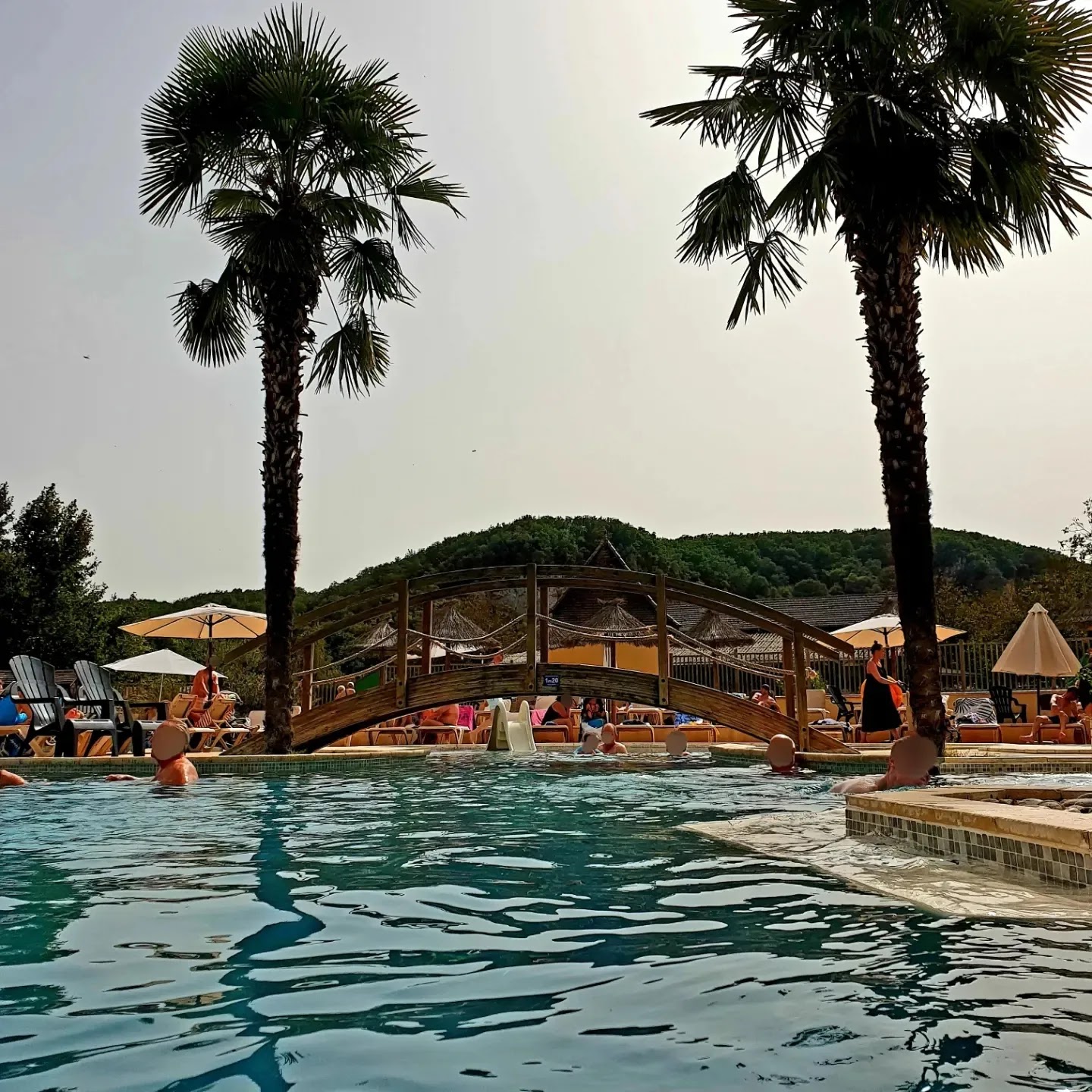 Posté le 20/08/2023 à 16:23"L'emplacement exceptionnel au bord de la Dordogne, la vue sur les falaises et l'environnement arboré ne suffisent malheureusement pas à justifier les 5 étoiles de ce camping ! Le parc aquatique c'est 1 toboggan et 3 petits bassins qui sont rapidement saturés. A moins que le parc aquatique soit en fait le parking principal qui est inondé en permanence, et qui se transforme en pataugeoire quand il y a des orages ? On ne parlera pas du surveillant de baignade dont le travail se limite à une ronde toutes les 15min pour faire la chasse aux enfants qui oseraient grignoter leur quatre heures assis tranquillement à l'abris des parasols. Les emplacements des mobile-home sont petits, et il y a une forte promiscuité. La qualité de service est assez mauvaise. Télé indisponible la moitié du temps, une couverture wifi insuffisante. Pour la restauration sur place, les pizzas et les glaces sont bonnes mais le resto a une capacité très limitée (réservation obligatoire) et la cuisine ne nous laissera pas un souvenir impérissable. La salle de jeux est en réalité une salle avec 2 jeux et qq distributeurs de gadgets chinois vendus 2 euros. Les quelques équipements gratuits à disposition sont en piteux état. Le mini golf tombe en ruines, les tables de ping-pong gondolent et les machines de fitness extérieures rouillent. Le manque de moyen et de main-d'oeuvre se ressent particulièrement dans l'animation. Les réceptionnistes et les maîtres nageurs sont obligés de jouer dans les trop peu nombreux spectacles proposés. Chapeau à eux pour le travail qu'ils réalisent avec bcp de professionnalisme et de qualité."