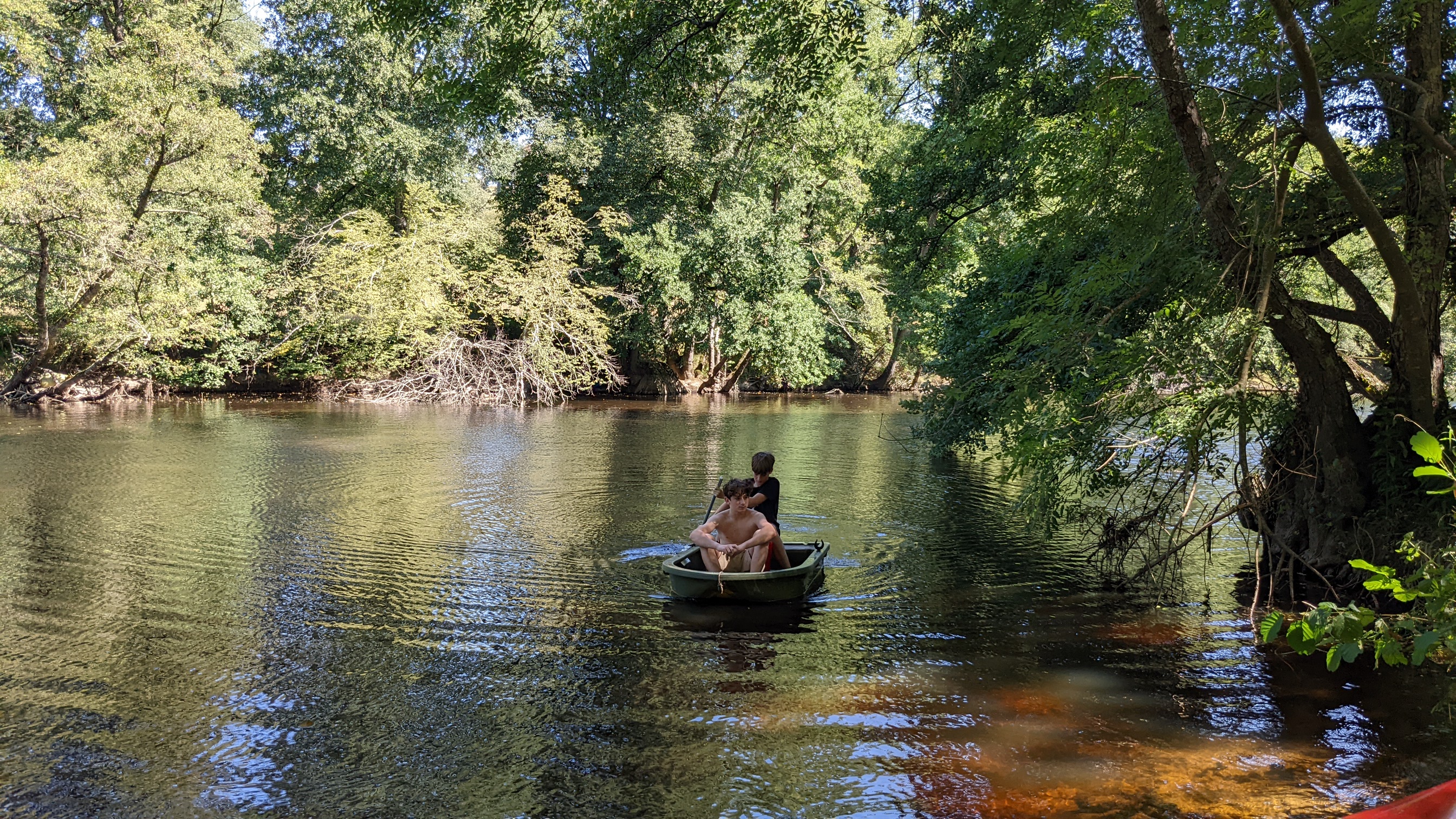 Posté le 23/09/2023 à 18:57"Arrivés pour une étape sur le chemin des vacances, nous sommes finalement restés 5 jours pleins. Accueil chaleureux, grands espaces, silence seulement troublé par la rivière qui coule au pied de la tente … cet endroit est magique. Alors oui, c’est un peu plus cher que dans un camping municipal mais le site, la propreté des sanitaires, l’accueil, le calme, la mise à disposition d’un canoë, de jeux, de PQ, de boissons, l’accueil de nos 2 chiens sans supplément, tout cela rembourse le léger surcoût au centuple. On reviendra, c’est sûr."