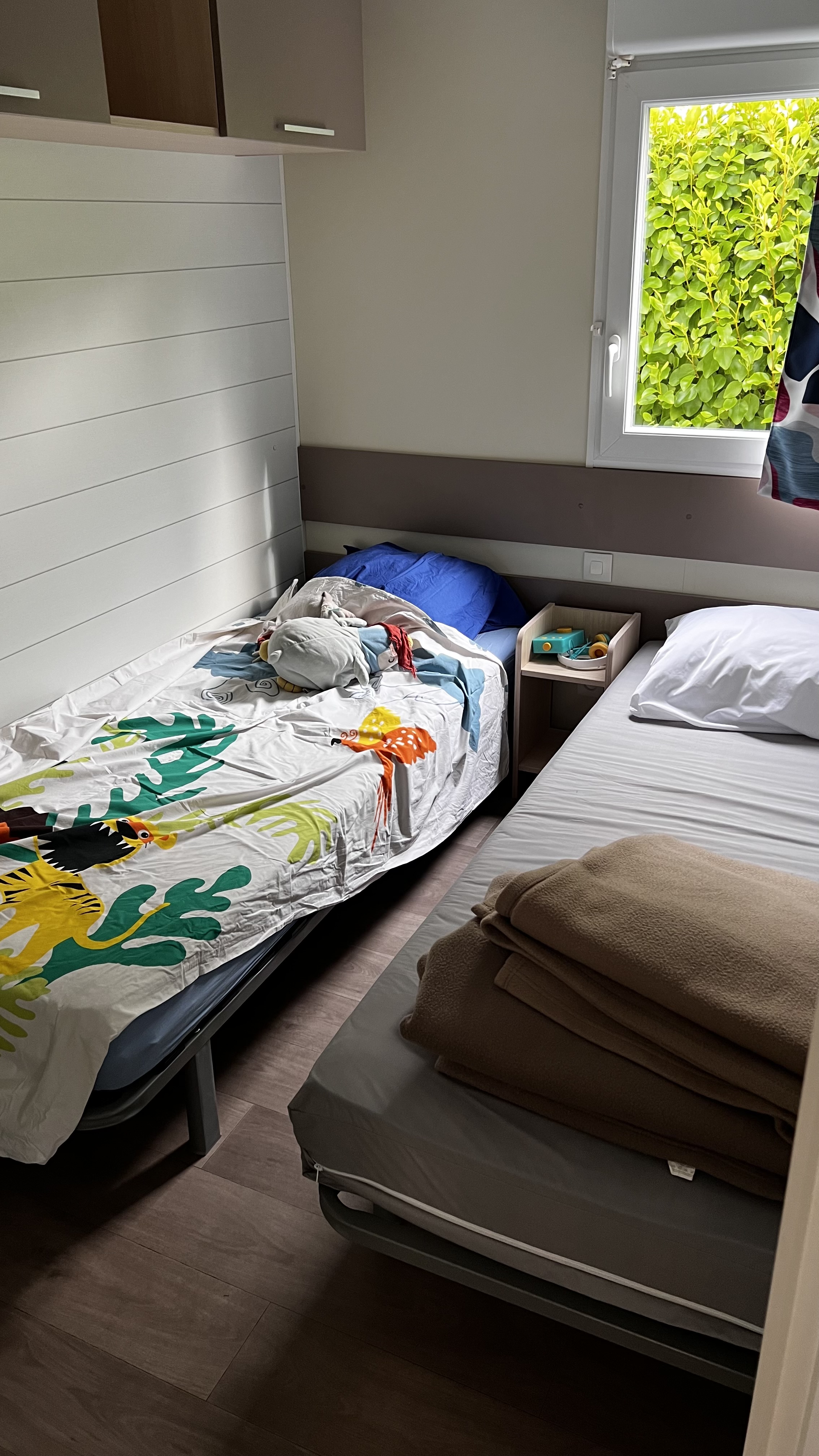 Nous avons effectué nos vacances du 26 août au 9 septembre au Mobil-Home 9 : Les ⛔️: - Je déconseille ce Mobil-Home aux arachnophobes nous avons eu beaucoup d’araignées sur la terrasse. - Les voisins sont propriétaires des mobilhomes et se parlent entre eux beaucoup trop fort et trop tôt le matin. - Bruit de route juste derrière bruit de chantier de travaux d’espace vert matin et après-midi par les voisins ou le camping. - L’allée où se trouve le 🏠 est la seule sans vidéo surveillance. - Le bar/restaurant fermé en semaine en septembre. - Location de vélo impossible le samedi car utilisé par les employés. Les 🟢 - La piscine chauffée mais petite ! - Les infrastructures sportives - L’accès à la plage - L’amabilité et l’efficacité du personnel. - Potager à disposition pour tous les campeurs.