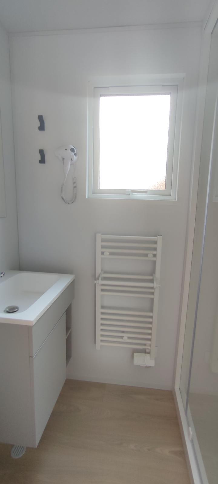 Nous avons passé une très belle semaine dans ce camping. Le logement était flambant neuf et entièrement équipé ! La moitié du camping n'a pas (encore) été aménagée, on y trouve donc encore des caravanes mobiles à l'ancienne. La piscine est agréable et le bar est également confortable. Le déjeuner était annoncé mais ce n'était pas possible. Vous devez commander du pain la veille avant 18h. L'emplacement est bon : proche de la plage et de plusieurs bars à huîtres. De plus, il n'y a pas beaucoup de restaurants accessibles à pied. J'ai trouvé moins charmant qu'il y ait toujours plus de 15 voitures en vue. Presque tous les chalets donnent sur un parking ou sont très proches d'un autre chalet (2 mètres ou moins). Pour les enfants : Une aire de jeux pour enfants serait un plus et la vente de glaces en bâtonnets est également un conseil. De plus, un contenant en verre SUR le camping lui-même serait également bienvenu. Il vous est désormais demandé de marcher 100 mètres jusqu'à la poubelle municipale. Ce sont des petites suggestions, en conclusion c'est un camping très sympa.